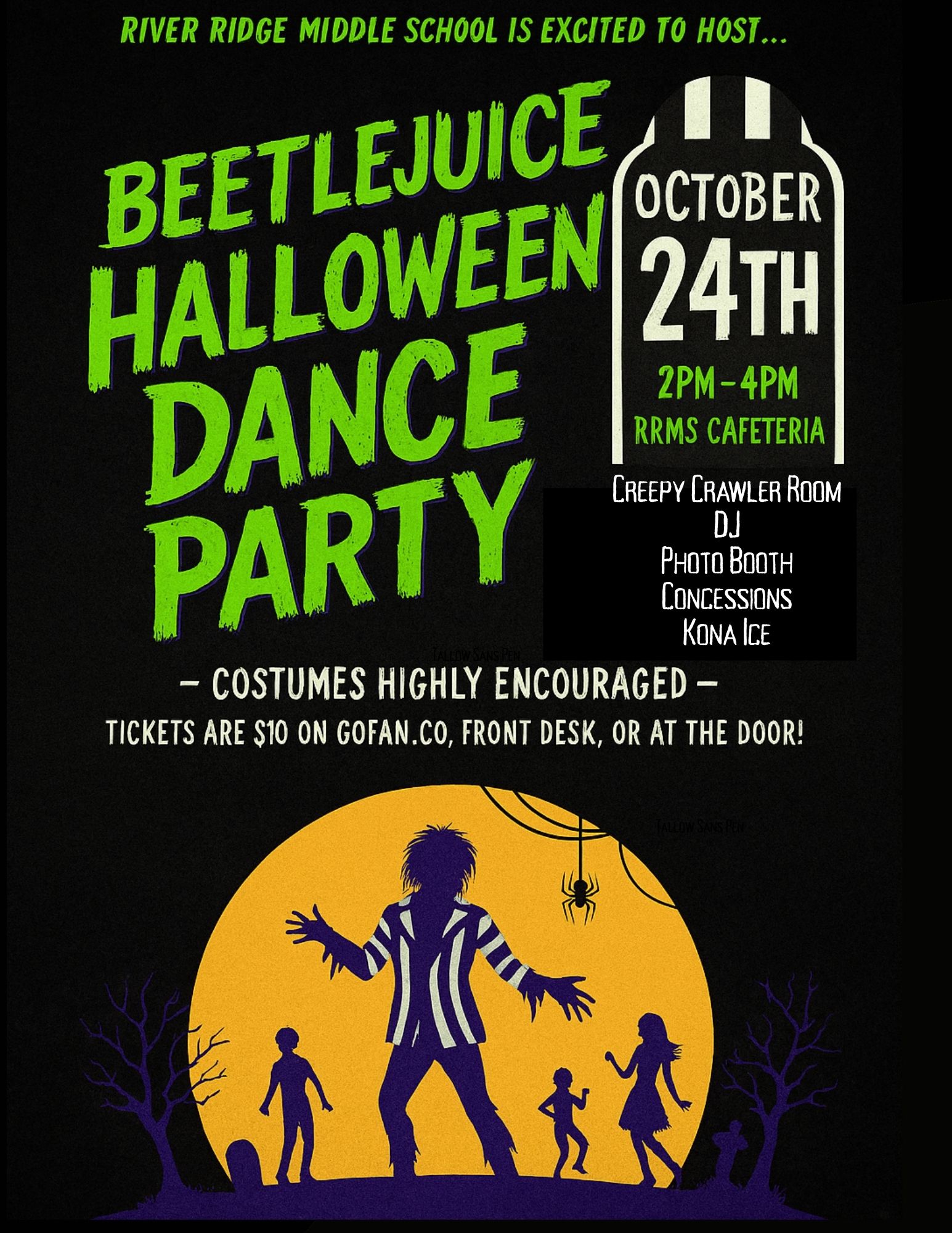 Get ready to shake, rattle, and BOO-gie at the RRMS Beetlejuice Halloween Dance Party!