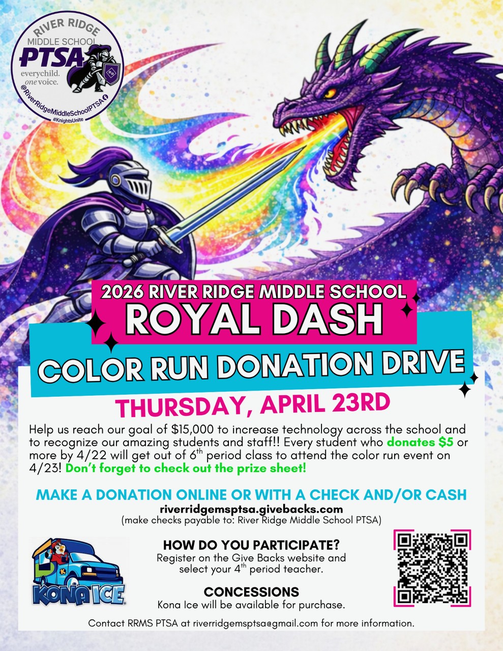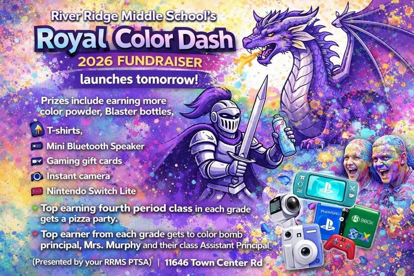4/23 RRMS PTSA Color Dash – Register today! by Angela Murphy | Apr 14, 2026 | School News, Slider Register for the RRMS Color Rush today online at https://www.givebacks.com/…/e1ee…/campaigns/bd489ca40b77! https://youtu.be/XSMFYuT5RyI The amazing event will be on Thursday, 4/23, during 6th period!